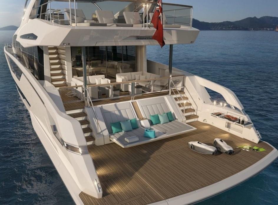 Presentado en otoño de 2020, el Ocean Club Ninety Yacht muestra lo más novedoso en diseño para la próxima generación de yates grandes de Sunseeker.