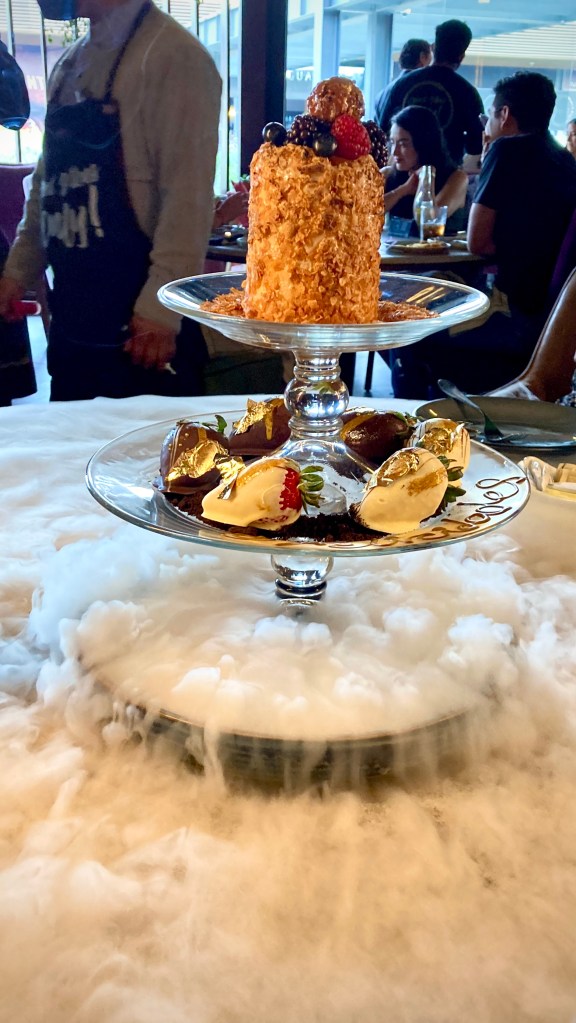 Cabe destacar que en el área de los postres hay un nuevo platillo que es el pastel de Red Velvet delicioso. También es recomendable la Torre de cuatro elementos en el caso de qué estén celebrando algún cumpleaños, aniversario, festejo, compromiso, etc.