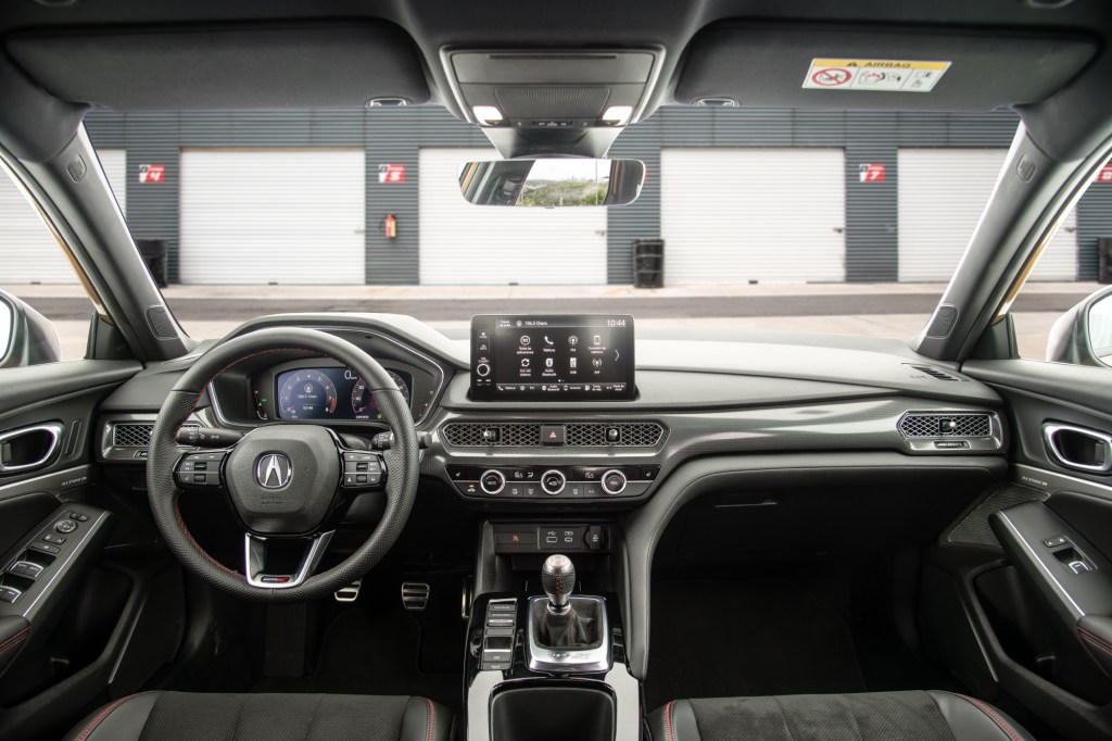 El interior centrado en el conductor, cuenta con materiales de primera calidad y un sin fin de detalles, como asientos delanteros deportivos rediseñados para una conducción de alto desempeño, cuero perforado en el volante y una palanca de cambios Ultrasuede con costuras rojas. El equipamiento de serie incluye un cuadro de instrumentos digital Acura Precision Cockpit de 10.2 pulgadas, una gran pantalla táctil HD a color de 9 pulgadas con compatibilidad inalámbrica Apple CarPlay y Android Auto, carga inalámbrica de teléfonos y Head-up Display.
