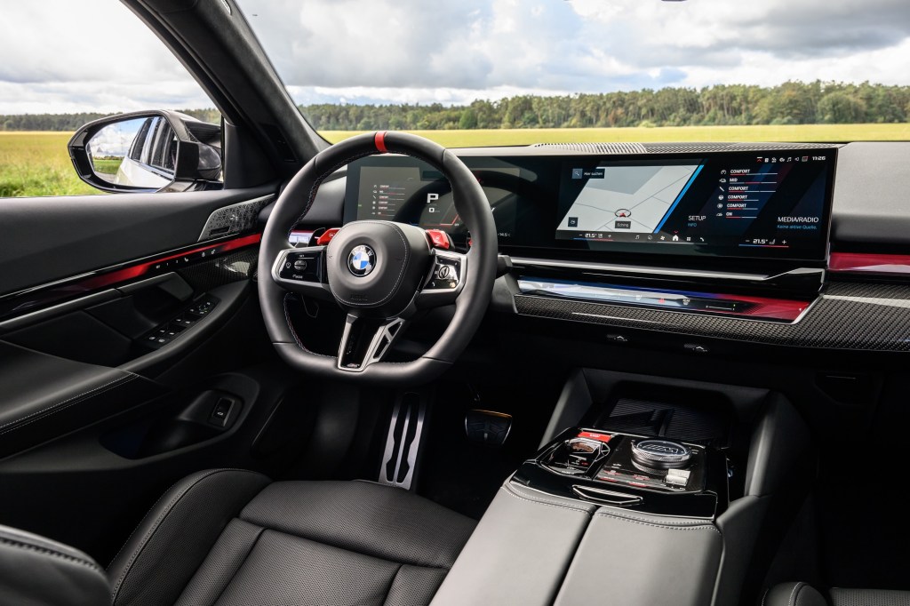 El ambiente interior refinado cuenta con vestiduras en piel Merino, la barra de interacción BMW, el aire acondicionado de cuatro zonas, asientos delanteros con calefacción. Y la especificación estándar para el nuevo BMW M5 también proporciona a los clientes el Sistema de Sonido Surround Bowers & Wilkins, una bandeja de carga inalámbrica para teléfonos inteligentes, Comfort Access, un sistema de alarma, operación automática de la tapa del portaequipaje, además de un cargador portátil y un cargador de pared Wallbox.