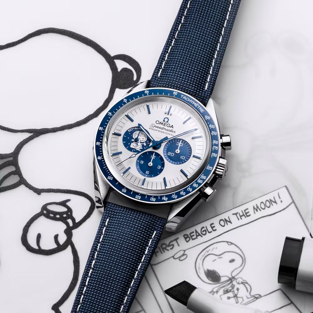 Snoopy, el célebre personaje de Charles Schulz, ha sido mucho más que una figura simpática para la NASA: ha simbolizado durante décadas el compromiso con la excelencia y la seguridad. Su presencia en este reloj no es solo decorativa, sino profundamente significativa. Desde 1968, el “Silver Snoopy Award” ha reconocido a quienes han hecho posibles los vuelos espaciales tripulados, y OMEGA forma parte indeleble de esa historia.